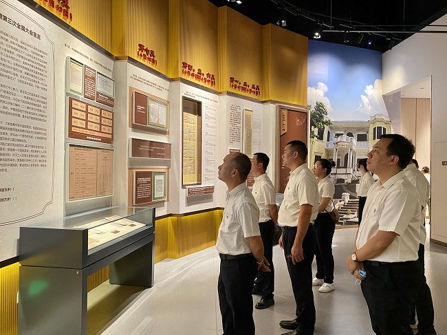 活动组织员工开展第一议题学习,了解《习近平新时代中国特色社会主义思想学习纲要(2023年版)》及“东莞市优秀共产党员”谢达铭同志先进事迹;随后到中共三大会址纪念馆开展现场教学活动,在党旗前重温入党誓词庄严宣誓,透过珍贵的文物、详实的档案资料,聆听党史故事,回顾党波澜壮阔的辉煌历史,重温初心使命。通过此次活动,党员们纷纷表示要从伟大建党精神中汲取奋进力量,发扬光荣传统,立足本职诠释初心。